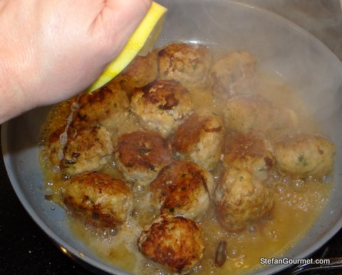 L’abbinamento per queste polpette di vitello al limone è un vino bianco secco e corposo. Noi abbiamo goduto un Greco di Tufo 2009 di Pietracupa.