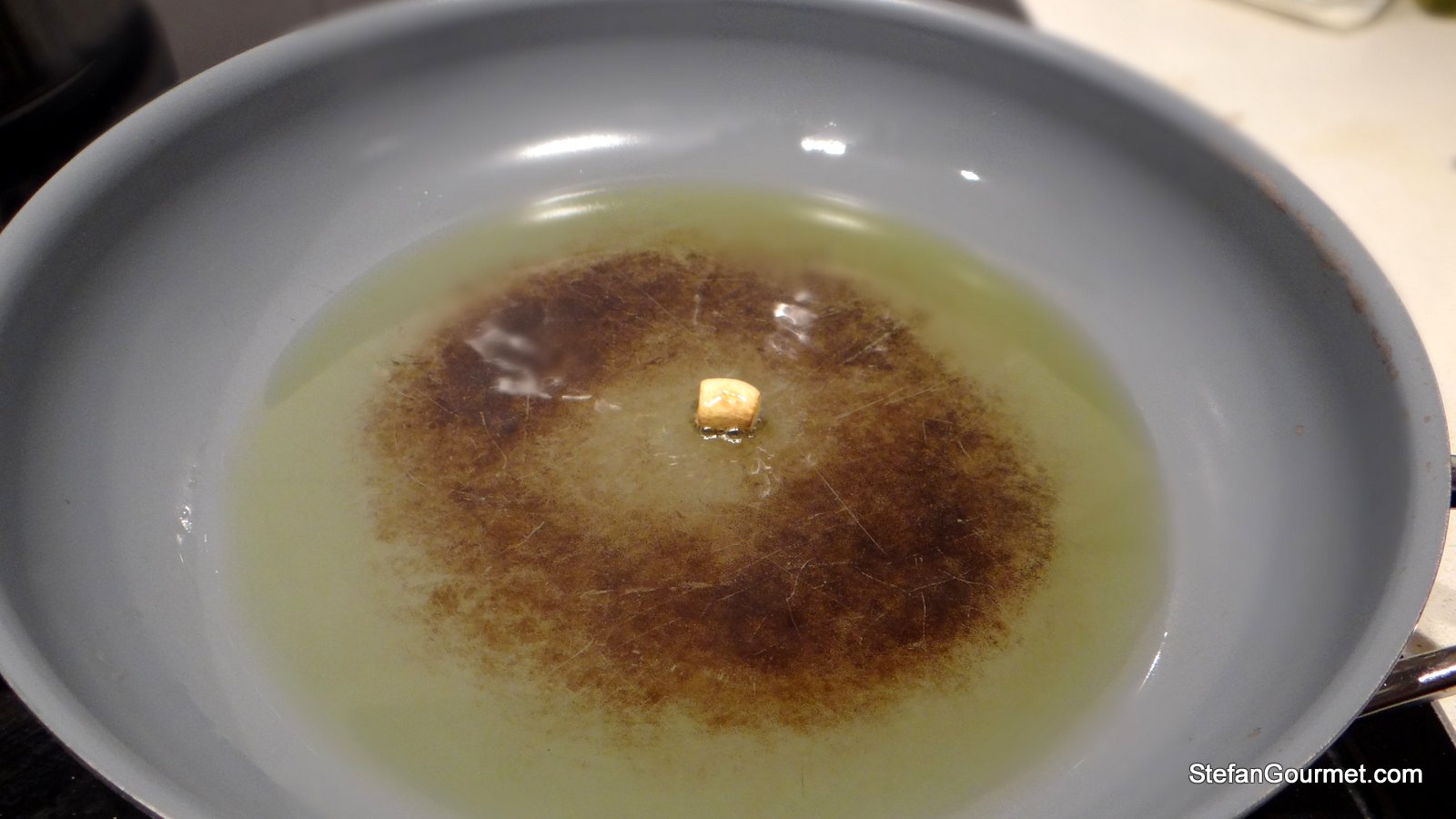 Scaldate l’olio in una padella e fate rosolare l’aglio per insaporire l’olio.