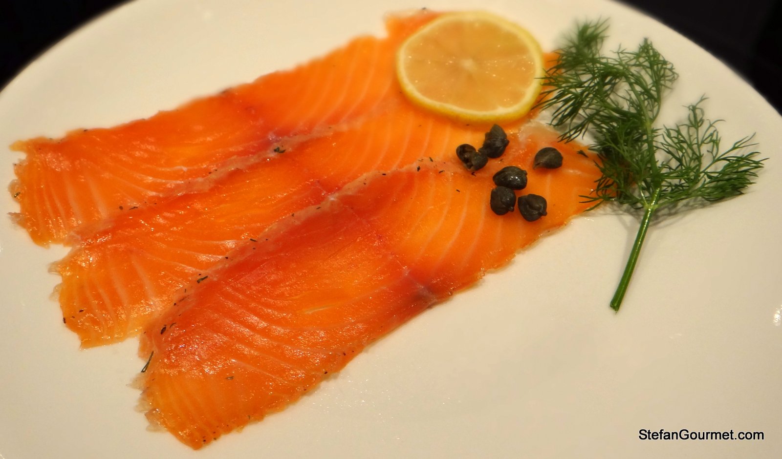 Il gravlax o gravad laks è salmone messo sotto sale e zucchero. Nella Scandinavia questo metodo è usato per conservare il salmone. Anche se oggi ci sono i frigoriferi, il gravlax è sempre preparato perché è così squisito. “Lax” vuol dire salmone e “grav” vuol dire seppellire, perché tanti anni fa il gravlax era stato preparato per seppellire il salmone sulla spiaggia.