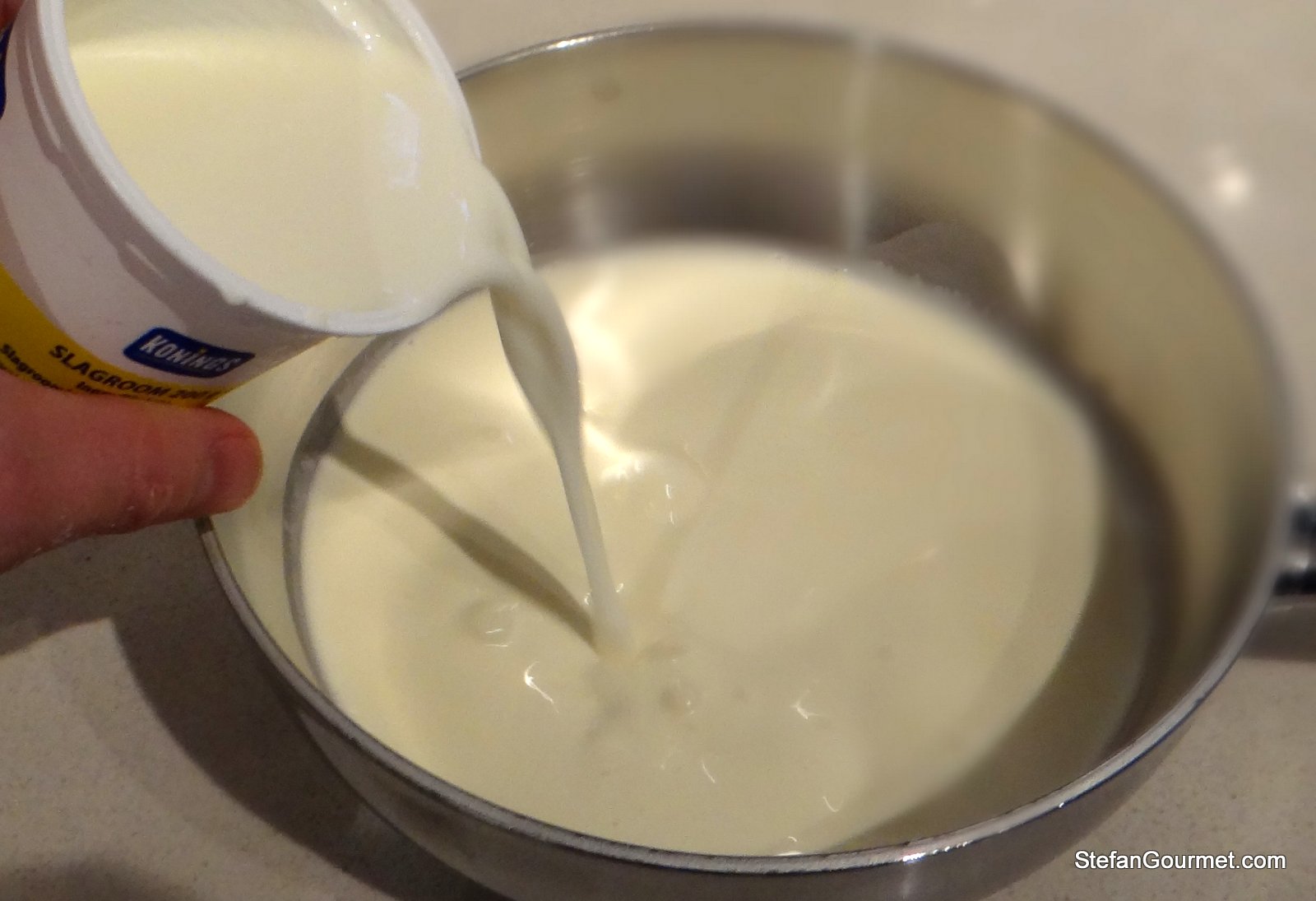 Unite la panna e il latte in un pentolino.