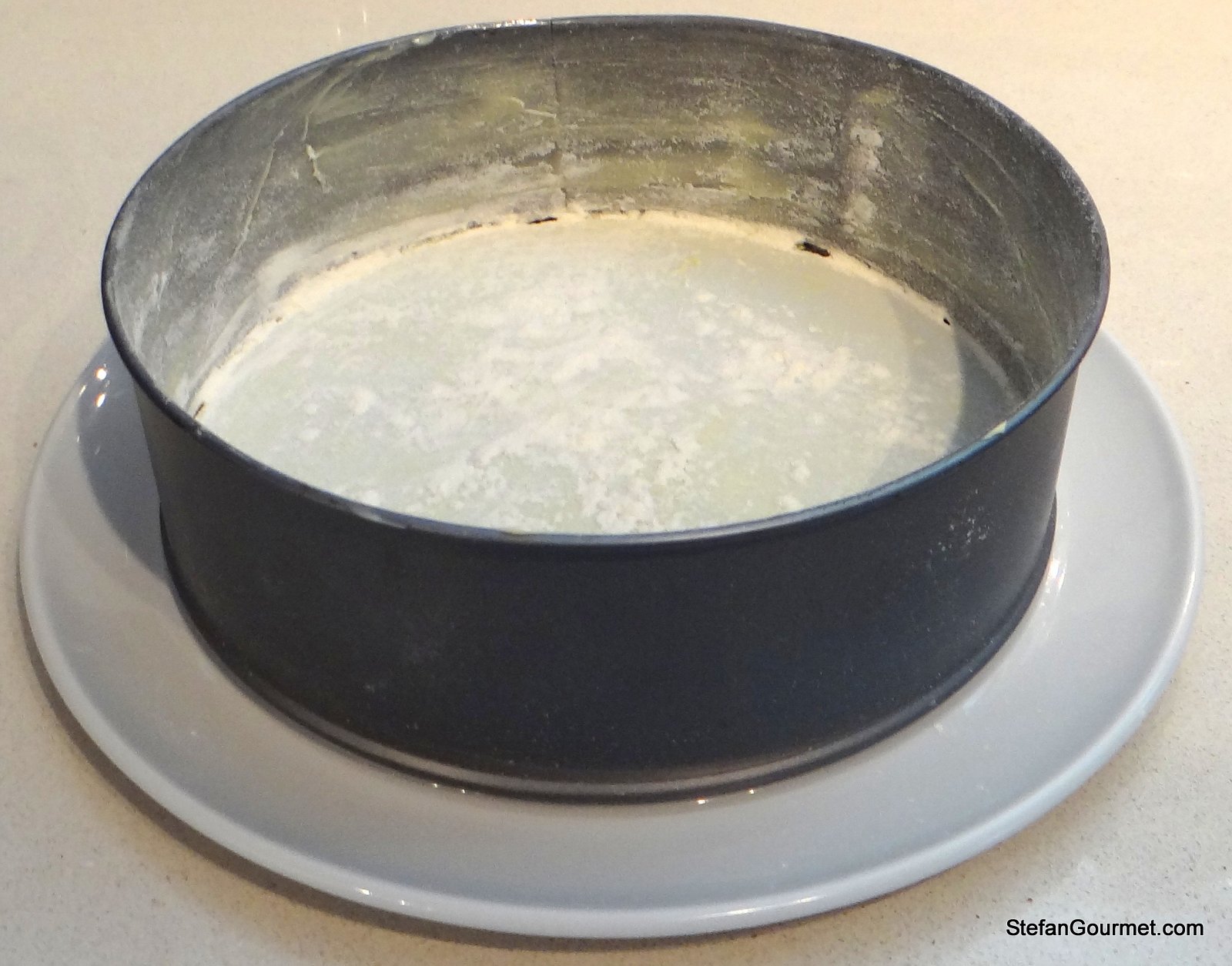 Imburrate e infarinate una tortiera di 20-24 cm.