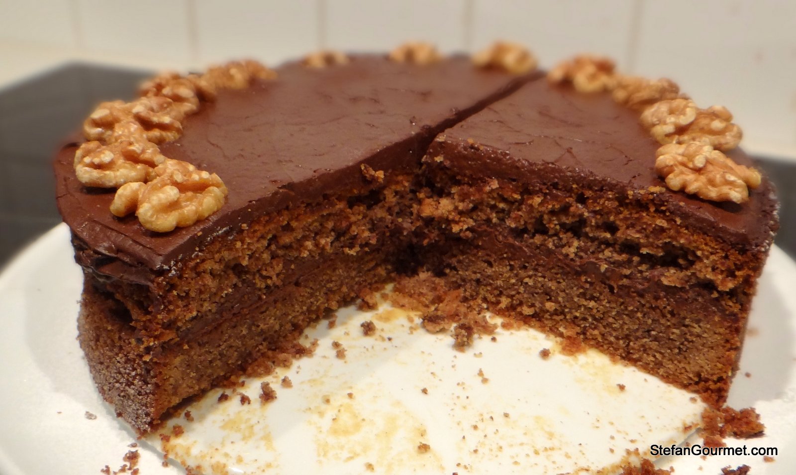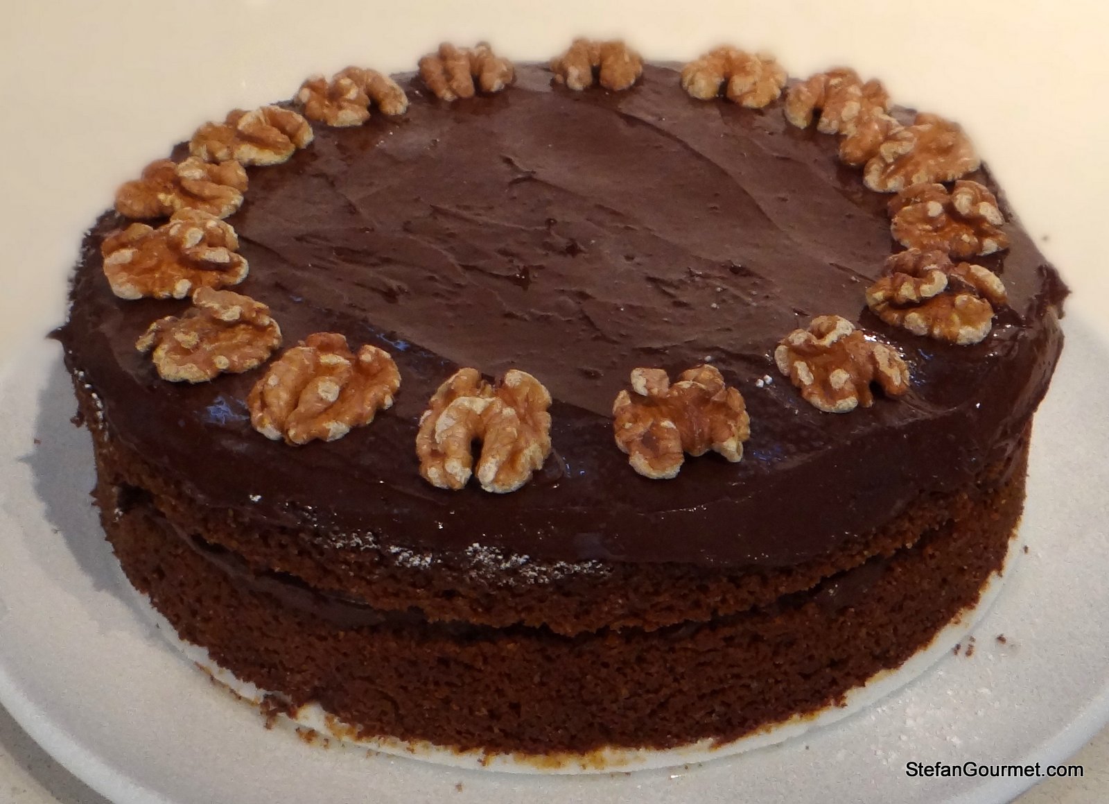 Decorate la torta con le noci tenute da parte.